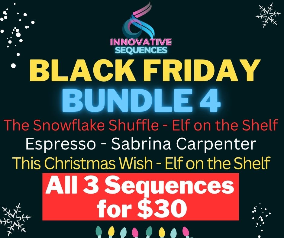 This sequence bundle will add a mix of kids' Christmas cheer (The Snowflake Shuffle from the Elf on a Shelf series), a pop sensation (Espresso by Sabrina Carpenter) and an emotional Christmas ballad (This Christmas Wish from the Elf on a Shelf series), all at a fraction of the cost you'd typically expect.